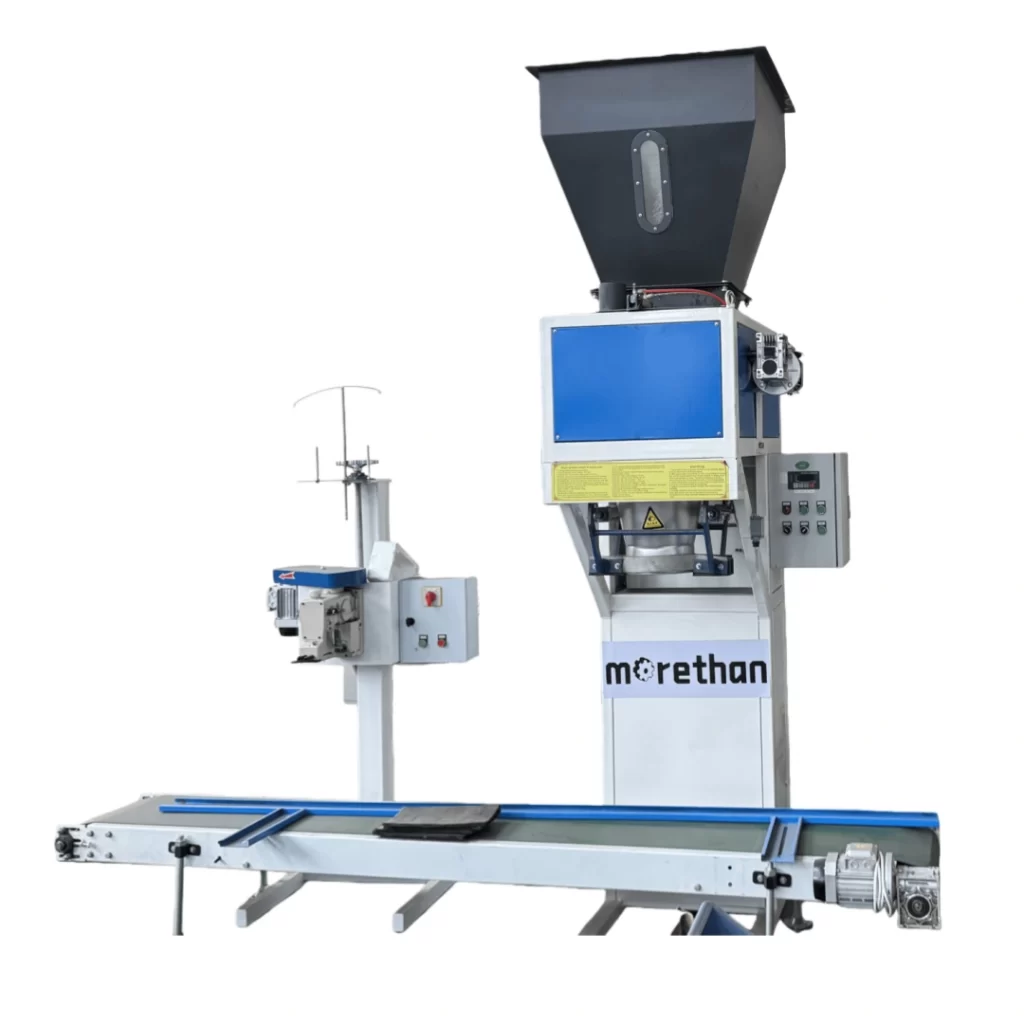 Automatic packaging machine packages finished pellets, integrating automatic weighing, packaging, and conveying functions.