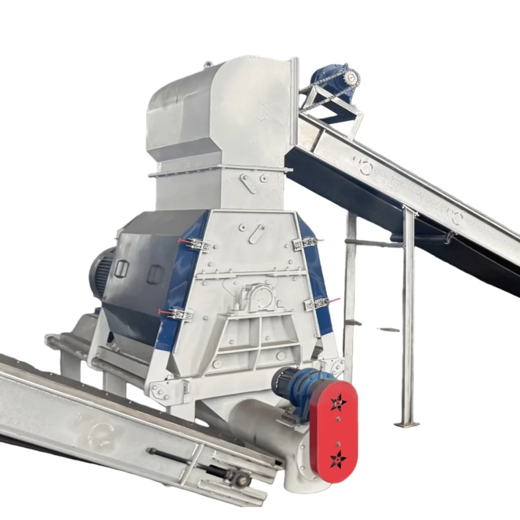 The integrated crusher is the front-end equipment of the production line, primarily crushing various types of trees, small-diameter timber, logging residues (such as branches and twigs), and wood processing residues (such as bark, strips, log cores, veneer, etc.). It can also crush materials such as demolition waste, construction formwork, and urban recycling waste, as well as wood-iron mixtures containing nails, metal, and thin sheet metal. Furthermore, it can crush non-wood materials (such as hemp stalks, reeds, bamboo, corn stalks, and cotton stalks). Based on our company’s experience in manufacturing drum chippers, this machine was meticulously designed according to the characteristics of raw materials and the particle size requirements of biomass power plants. It features wide raw material adaptability, high output, reasonable structure, simple operation, safety and reliability, and convenient maintenance, making it an ideal integrated biomass crusher both domestically and internationally.